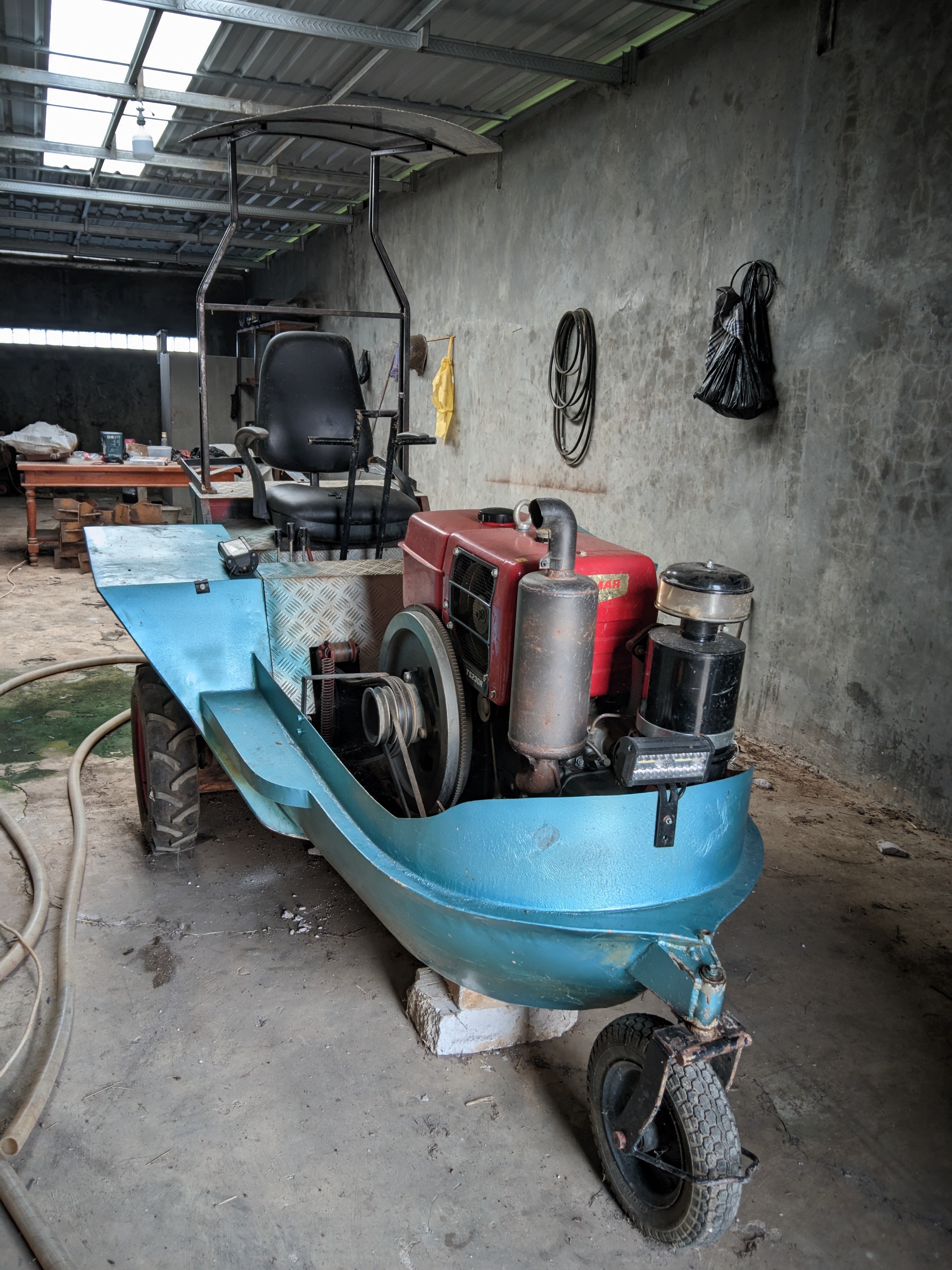 Boath tractor, fungsinya untuk membajak lahan dengan medan lumpur dalam, itu di gunakan pada fase pengolahan lahan sehabis panen/ pasca panen